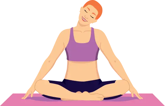 Inizia sedendo comodamente in Sukhasana e posiziona un cuscino zafu sotto le natiche, se necessario. Inclina leggermente la testa da un lato all’altro, osservando se c’è tensione. Successivamente ruota lentamente la testa prima in senso orario e poi antiorario, allungando più che puoi i lati e la parte posteriore del collo. Assicurati anche che la mascella sia rilassata. Continua per 1-2 minuti.